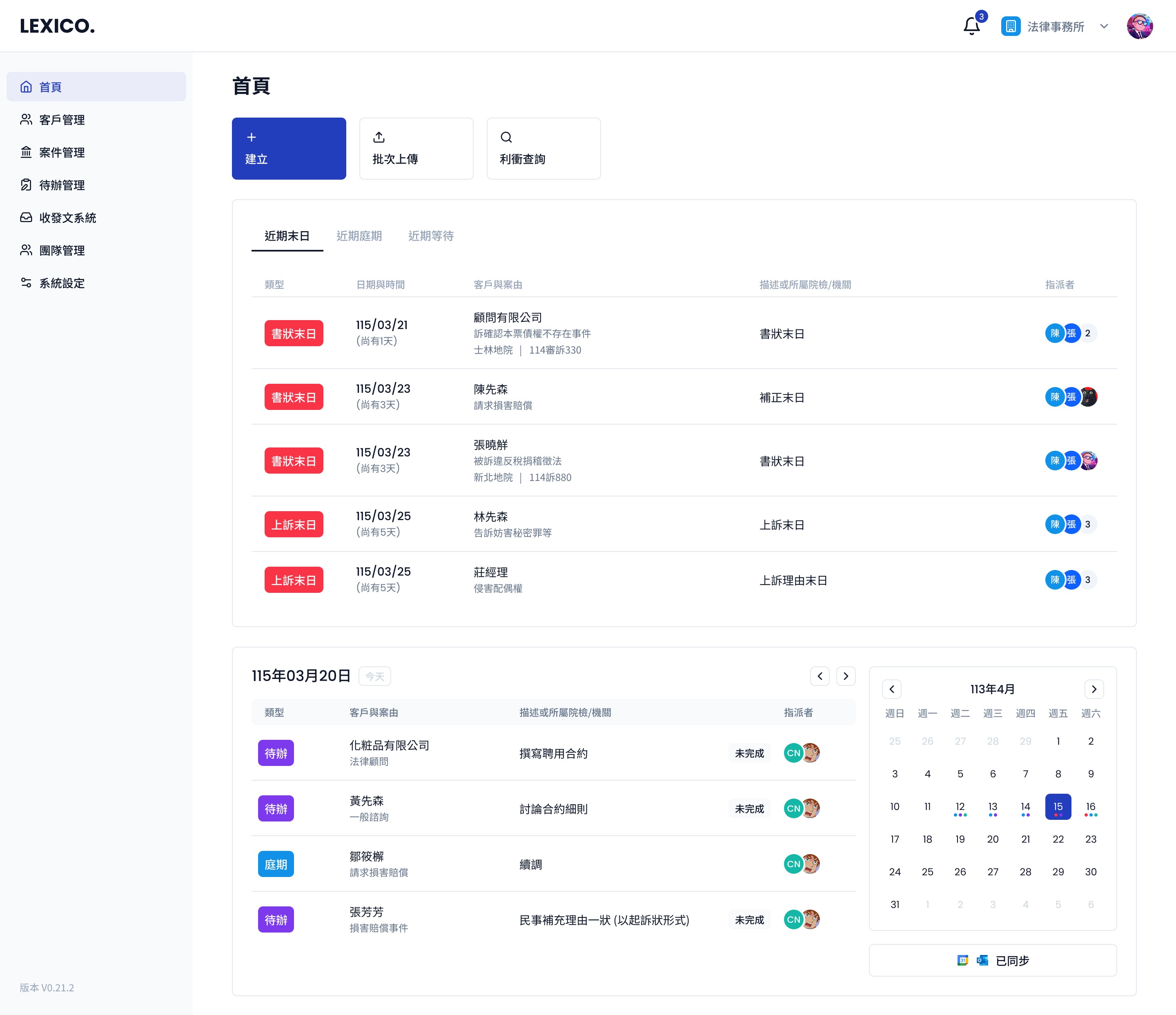 LEXICO 以所長、律師、助理 3 種視角全面拆解事務所的工作流程,用 LEXICO 取代多系統、多表單、需要硬適應的不適感,減少行政雜務和重複溝通,優化工作流程,提升每小時的價值。