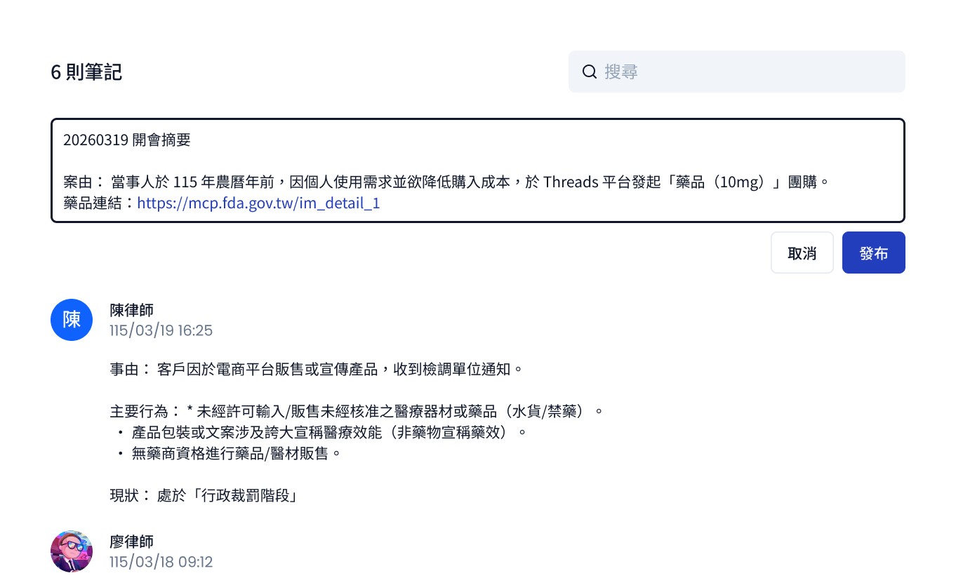 公文跟案件筆記整合成一條線,回溯紀錄不用再翻紙箱。